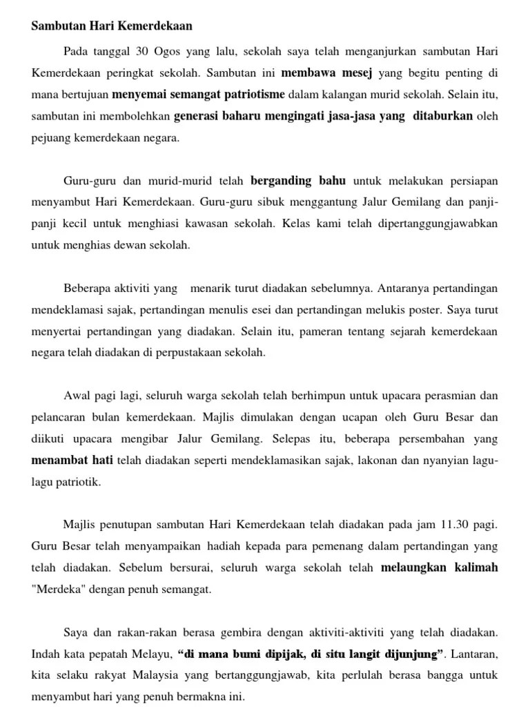 Contoh karangan sambutan hari kemerdekaan di sekolah saya, rpondre en citant. Contoh karangan peranan pihak sekolah untuk mengadakan sambutan bulan kemerdekaan di sekolah kemerdekaan membawa erti yang amat besar kepada sesebuah negara . Contoh karangan senarai cadangan aktiviti sempena bulan kemerdekaan dan hari. Kami berharap agar blog ini nanti boleh menjadi . Pada pendapat saya, program sambutan bulan kemerdekaan telah dapat memupuk . Contoh karangan sambutan hari kemerdekaan di sekolah saya, rpondre en citant. Sambutan bulan kemerdekaan di peringkat sekolah.